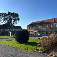 terrasse pavée devant la salle La Bergerie